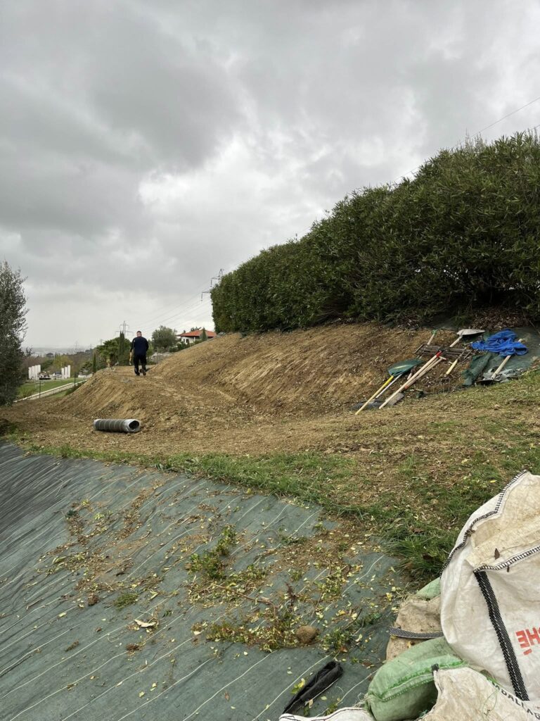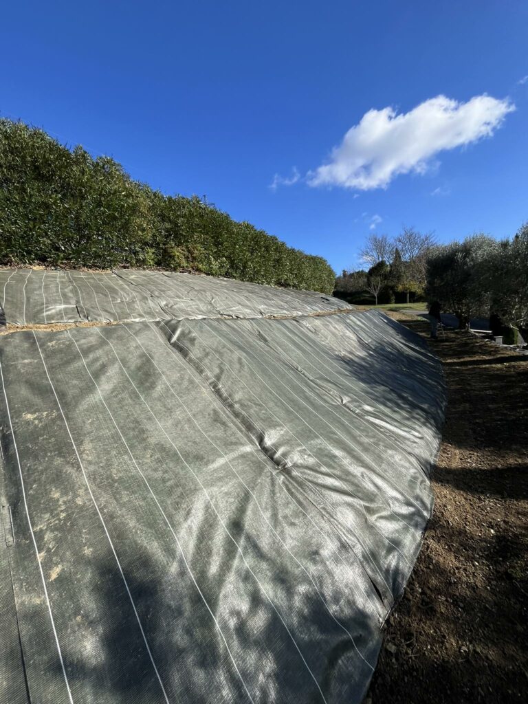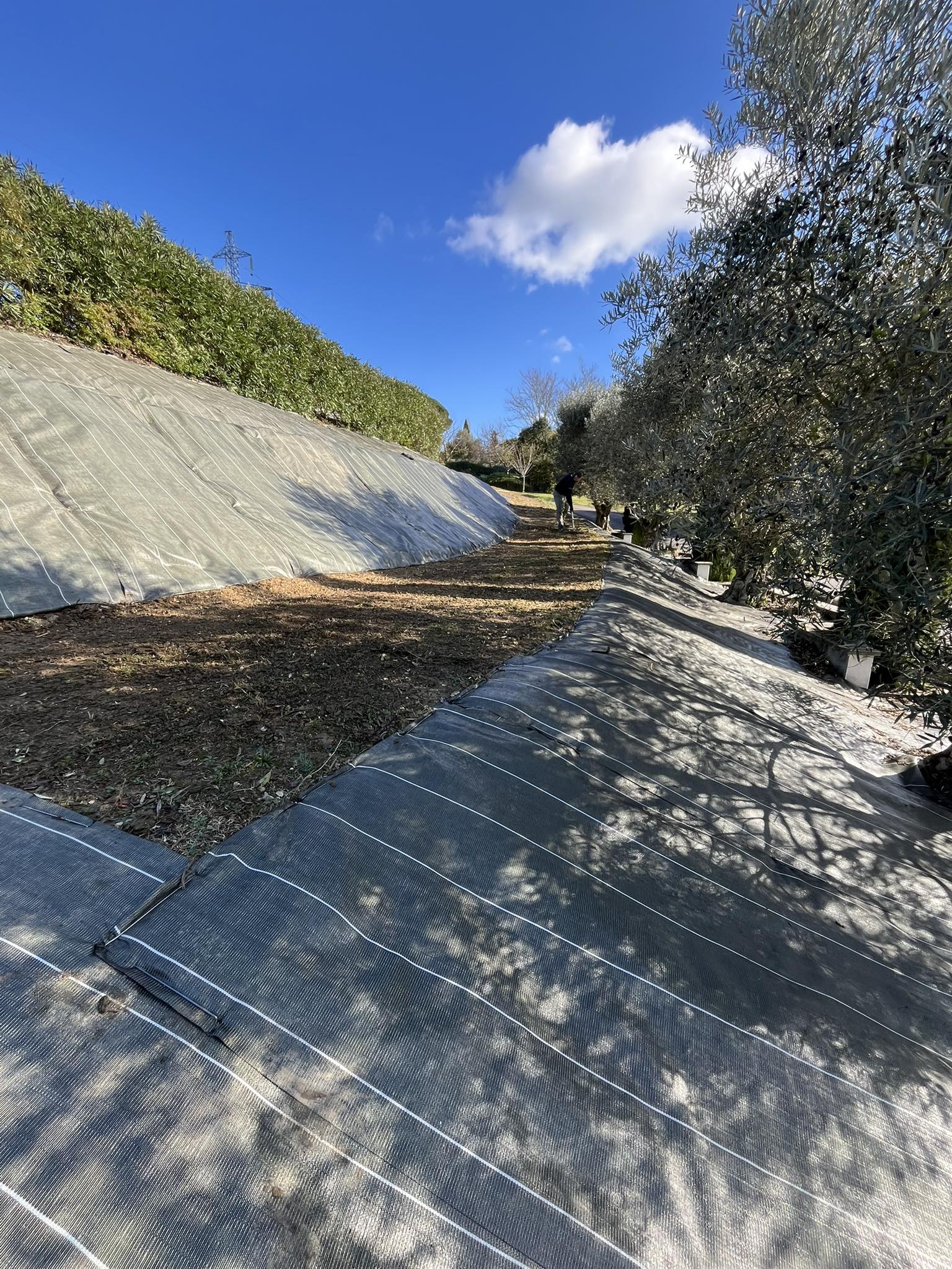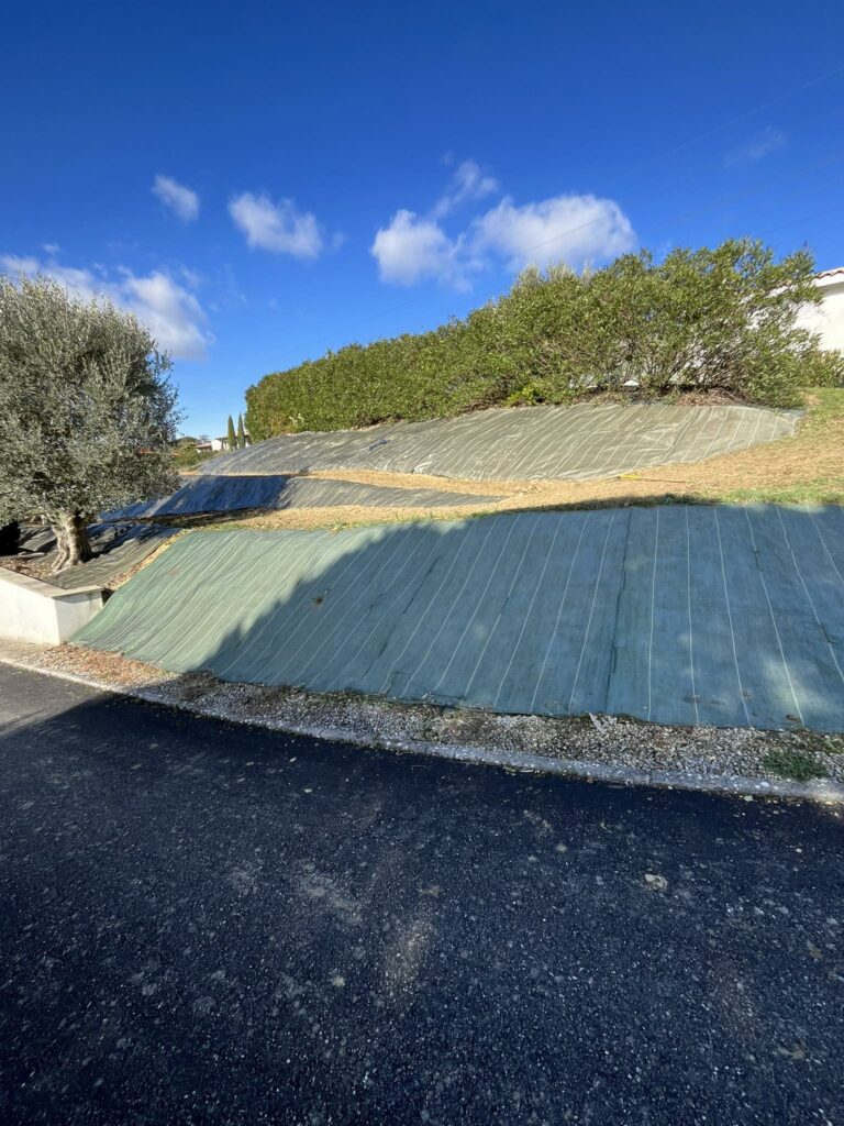 Mise en place d’une bâche sur les talus pour limiter la repousse et garder un terrain propre plus longtemps ![]()